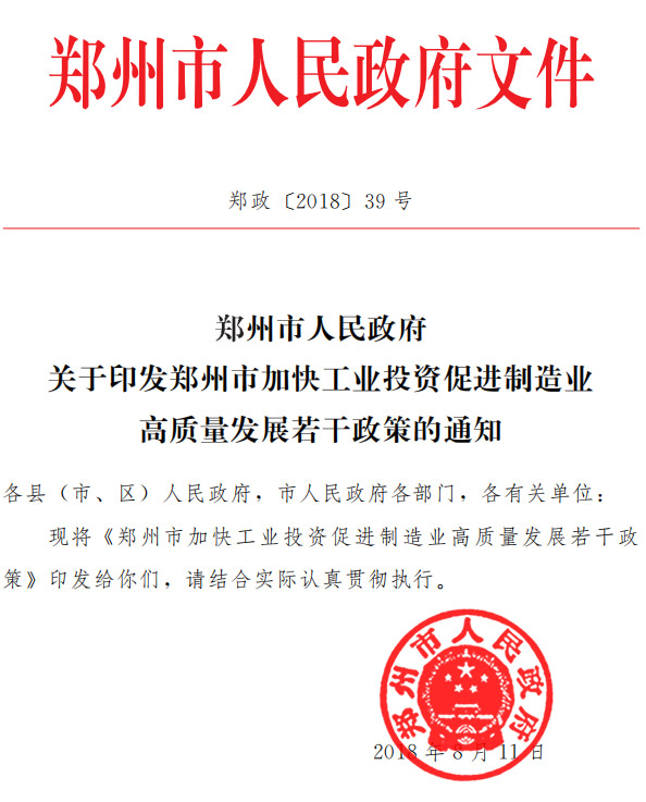 政府在不斷督導(dǎo)企業(yè)進(jìn)行改造升級的過程,也在不斷為企業(yè)考慮,出臺補貼政策。8月份,鄭州市出臺了加快工業(yè)投資促進(jìn)制造業(yè)高質(zhì)量發(fā)展若干政策